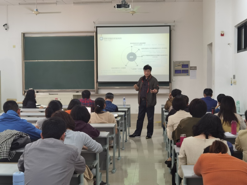 陈坚林教授现任上海市教育技术协会外语专业委员会会长,在计算机辅助外语教学研究领域造诣深厚。下午在C教学楼101大教室,结合上半年疫情期间教学实践,陈教授为全院教师做了题为《外语教师信息化教学能力的构建与发展》的讲座。讲座结束后,太阳成集团tyc151cc教师纷纷提问,与陈教授互动,现场气氛热烈。