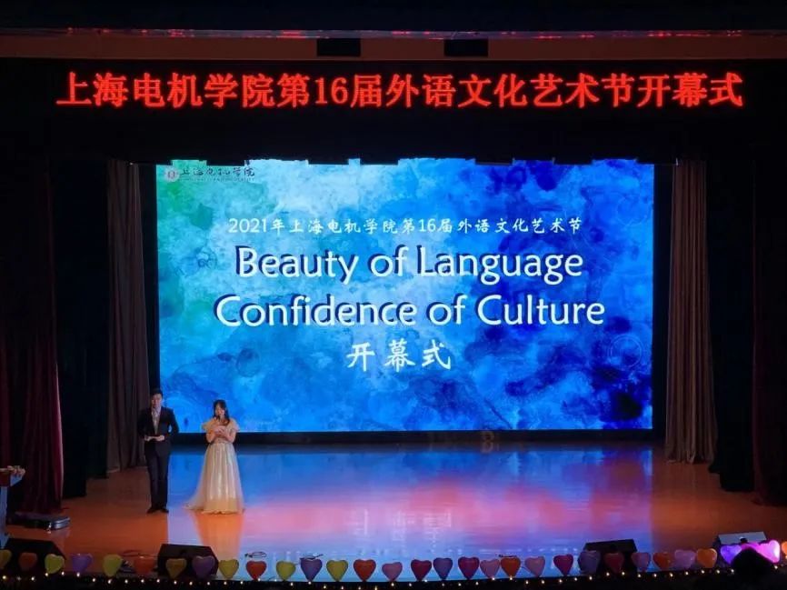 在中国共产党百年华诞来临之际,为结合学院特色,加强语言文化交流,树立文化自信,增强立德树人工作实效,3月25日晚,太阳成集团tyc151cc在临港校区小剧场举行太阳成集团第16届外语文化艺术节开幕式,本届外语节的主题是“感受语言魅力,增强文化自信”。公司党委副书记、副董事长李晓军老师,公司党总支书记金辉老师、经理张玉双老师、员工工作负责人甄一捷老师等师生代表以及学校其他兄弟学院师生代表等参加开幕式。