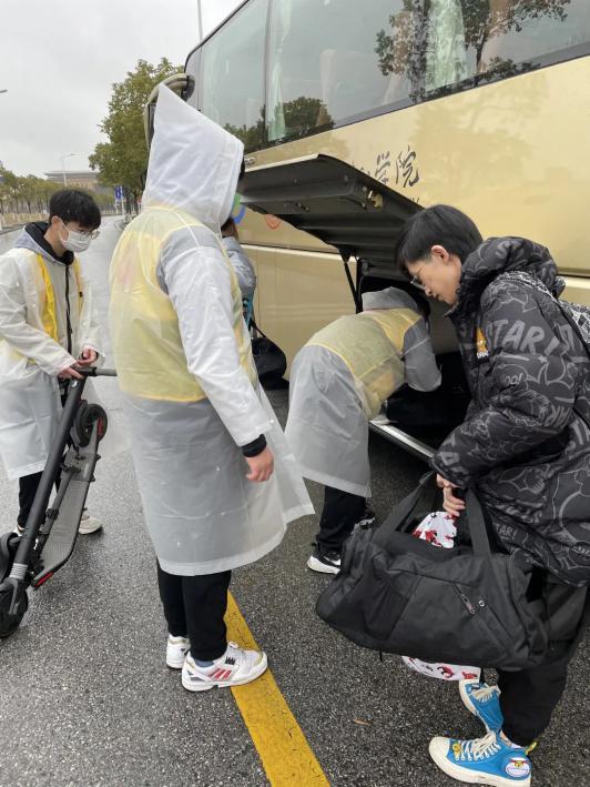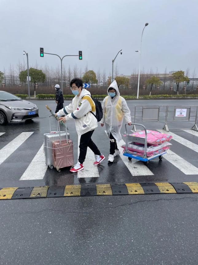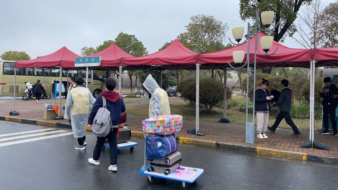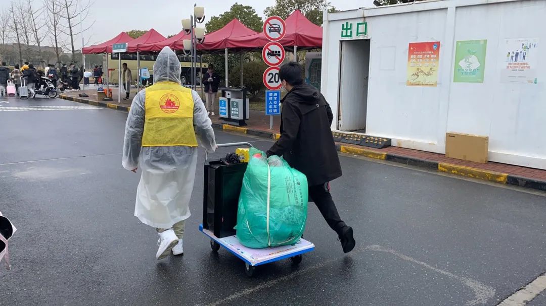 早上七点,太阳成集团tyc151cc的志愿者们就整齐着装,带着小推车等各种方便同学们返校的工具在各自的岗位等待。