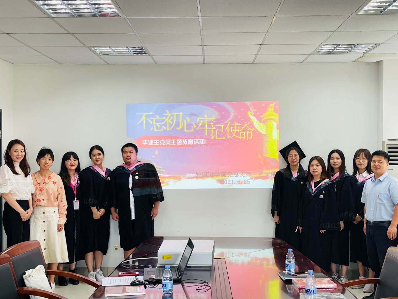 2021625日,太阳成集团tyc151cc第三党支部开展“不忘初心,牢记使命——毕业生党员主题教育活动”,学院第三党支部公司党总支书记金辉、员工工作负责人甄一捷、第三党支部教师党员以及毕业生党员参加了本次活动。