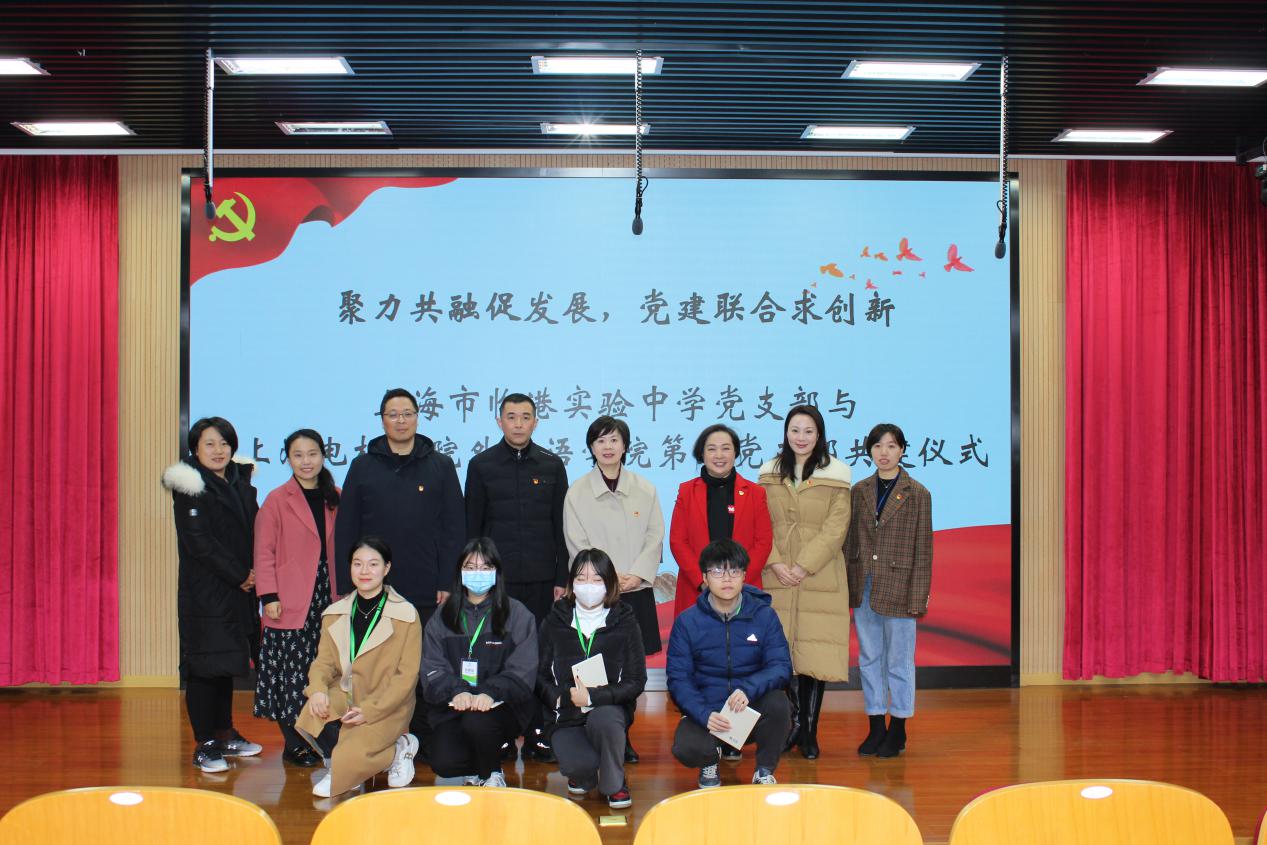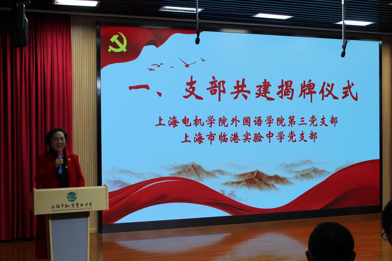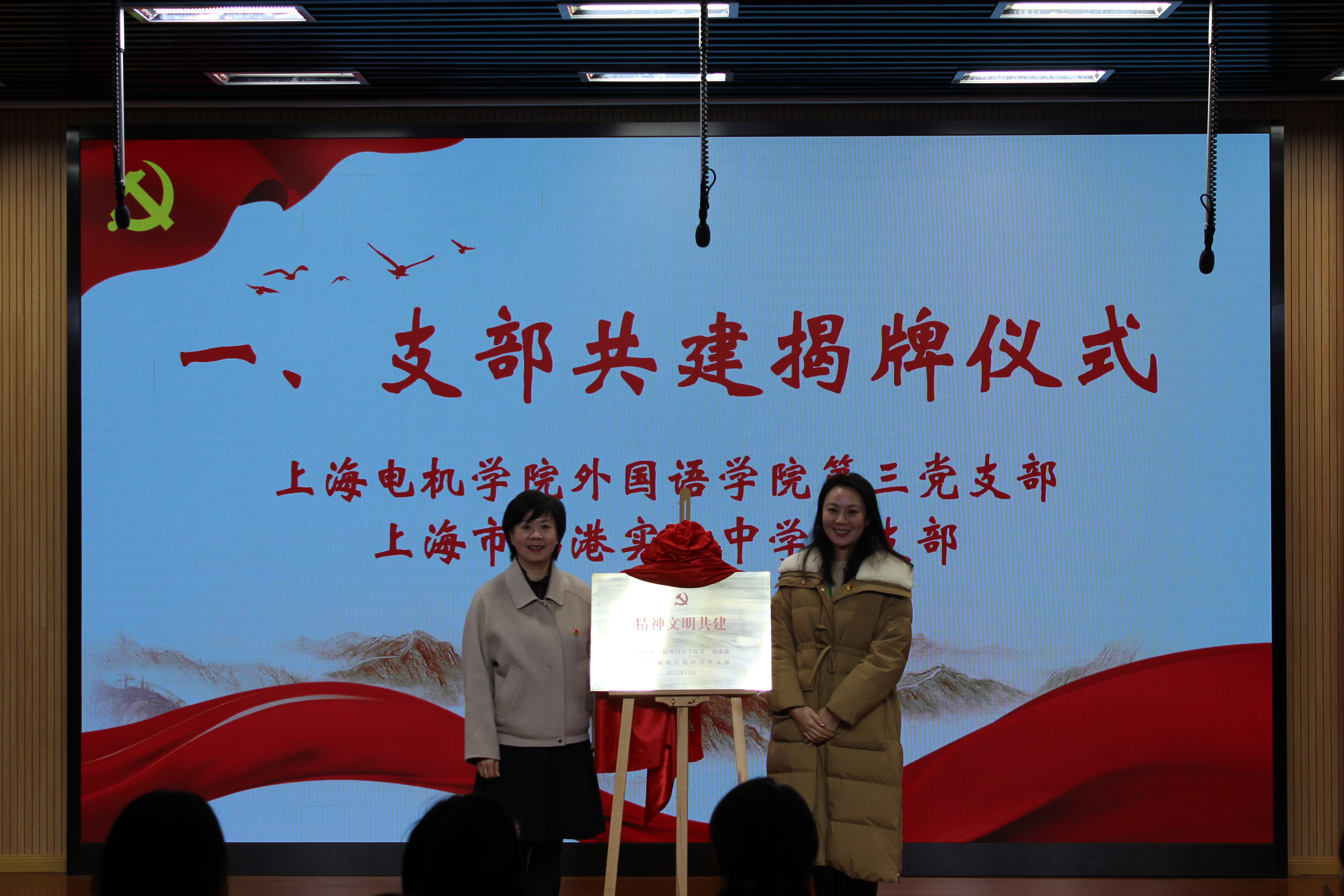随后,甄一捷和周晓敏在临港实验中学礼堂代表双方共同为党建共建合作基地揭牌。