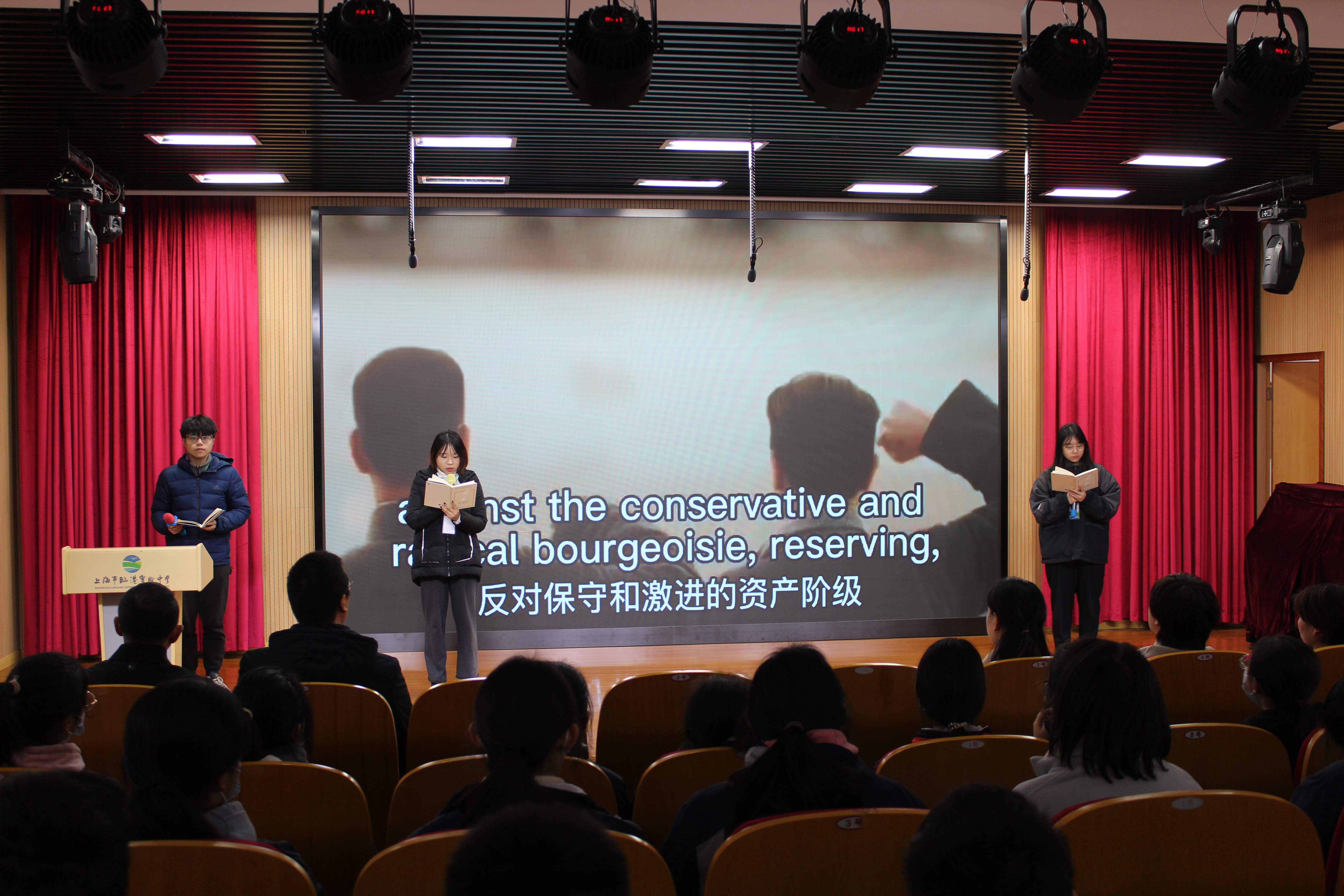 在揭牌仪式上,太阳成集团tyc151cc经理张玉双介绍了太阳成集团tyc151cc在人才培养、党员发展、员工就业等相关情况,表示本次党建共建合作基地的签约挂牌,是两校协同育人、提高员工实践能力的重要举措,也是探索党建共建迈出的重要一步。随后,太阳成集团tyc151cc员工代表为现场师生带来了《Red star over China》英文演讲与《共产党宣言》英文朗诵。