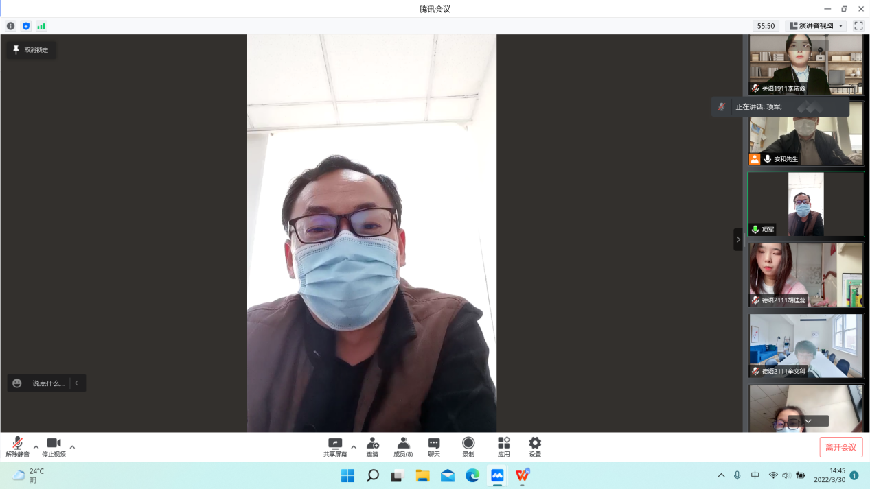 随后,甄一捷老师对各位同学的学习生活表示了关心与关怀,表示学院会积极解决各位同学的问题,并且希望同学们调整好自己的心态,以积极乐观的态度去面对疫情给我们带来的不便,同时也希望身处境外的同学们从国家全民抗疫中汲取精神力量,加强思考、立志向学、担当有为。