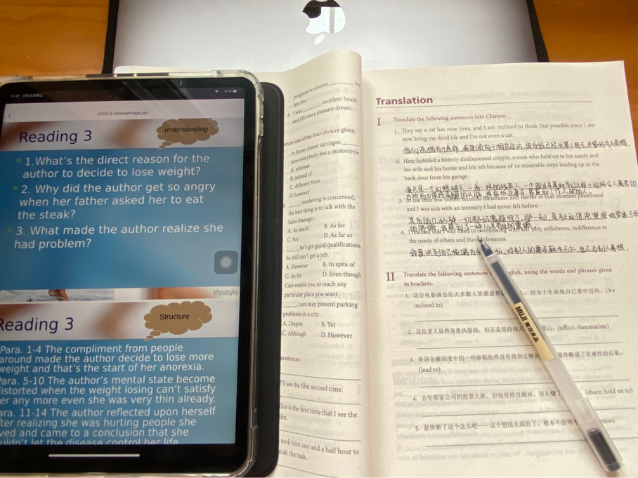 在这样一节综合英语的课堂上,我们的老师向我们展示了来自于TED的一次演讲,主讲人用诙谐的说辞介绍了自己与脑瘤生活的那些时光,尽管现在已经痊愈,但是回想起来那些日子,她却并没有对这样的经历感到不堪与失落,相反,她感谢这样一次难得的机遇,使她开始感悟围绕在自己身边的幸运,正是这样一次遭遇让她明白珍惜眼前美好的重要性。如此,对于我们员工而言,珍惜已有的资源,不去浪费自己的时间,我们有着健康的体魄,更加需要我们开始筹划自己的未来,而不是等到自己身体每况愈下时后悔自己不去珍惜。