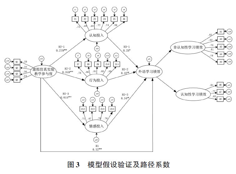 在该研究中,研究团队以比格斯3P教学模型为理论基础,通过问卷调查探究了虚拟仿真实验教学对本科生外语学习绩效的影响机制,考察了外语学习投入、仿真实验教学参与度、外语学习绩效三者之间的关系。结果表明,虚拟仿真实验教学对本科生外语学习绩效具有正向影响,学习投入在其中发挥了中介作用。基于此,文章提出如下建议:①在高校外语课堂中推广虚拟仿真实验教学;②注重学习者在虚拟仿真实验教学中的交互与反思;③充分发挥教师的引导作用,创设以员工为中心的学习情境;④将传统的教学方法和教育技术相结合。