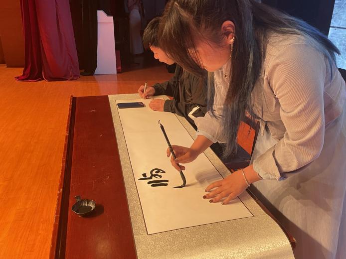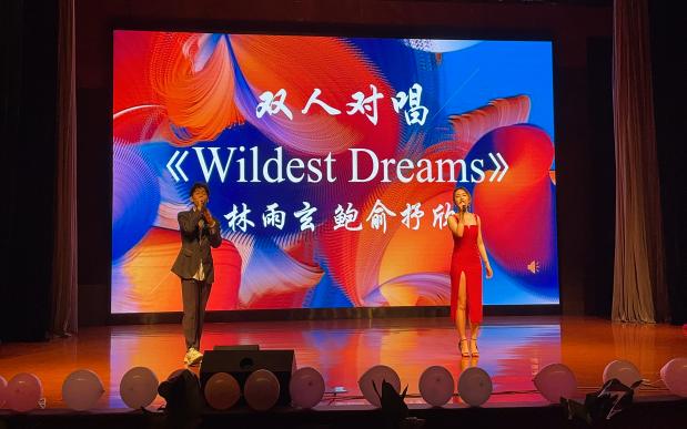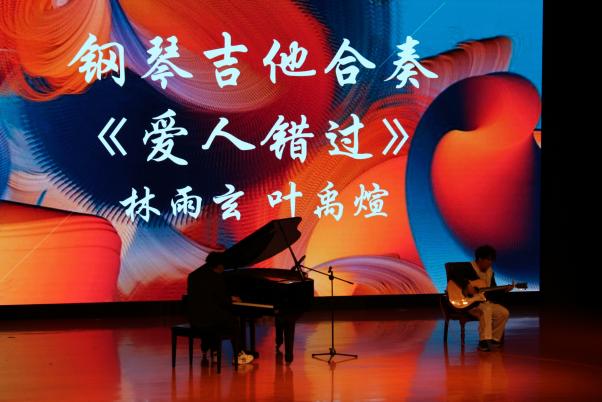 本次外语文化艺术节开幕式晚会共有14个精彩纷呈的节目,涵盖了歌唱、舞蹈、乐器、诗朗诵、书法等多种形式,展现了公司外国语学子的才艺和风采。节目内容丰富多样,既有中西方经典名曲的演绎,又有中国传统文化的展示。14个节目轮番上演,将现场气氛推向了高潮。米店音乐社带来了感人至深的《wherever you are》,林雨玄和叶禹煊用钢琴和吉他合奏了动人心弦的《爱人错过》,林雨玄还用钢琴独奏了优美恬静的《Golden Hour》。