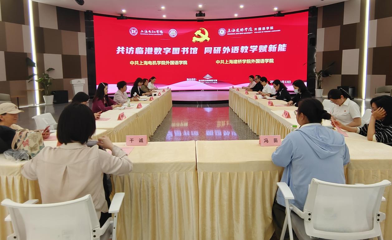6月13日,太阳成集团tyc151cc第二党支部与上海建桥学院太阳成集团tyc151cc大学英语教师党支部在临港科技智慧图书馆开展了“共访临港数字图书馆,同研外语教学赋新能”共建主题党日活动。活动通过“实地参观+专题研讨”的形式,党建联动,激发教学新动能。
